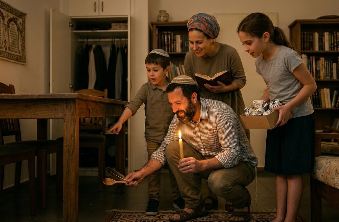 בדיקת חמץ היא המשימה האחרונה לפני כניסת חג הפסח. על פי ההלכה, לא די בכך שלא נאכל חמץ, אלא עלינו לוודא שאין חמץ בבעלותנו וברשותנו ("בל ייראה ובל יימצא"). המצווה מורכבת משלושה שלבים: הבדיקה בליל י"ד בניסן, הביעור בשעות הבוקר שלמחרת, והביטול – הצהרה משפטית-רוחנית שהחמץ שנותר אינו שייך לנו.